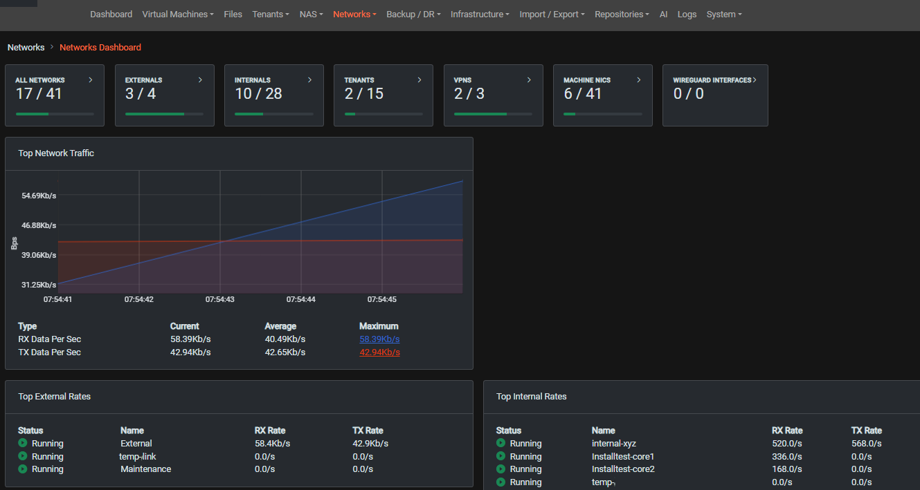 - Use the persistent top navigation to quickly switch between major modules (VMs, Networks, Storage) without returning to the main dashboard