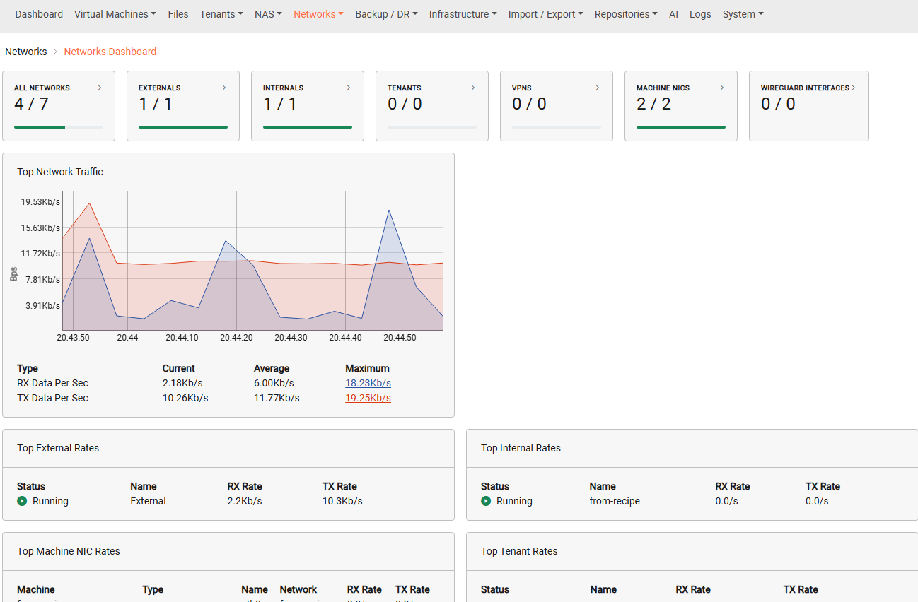 The top navigation allows you to quickly switch between different areas of the system without losing your current context. For example, you can switch from managing a VM to reviewing network configuration, then return to the VM exactly where you left off.