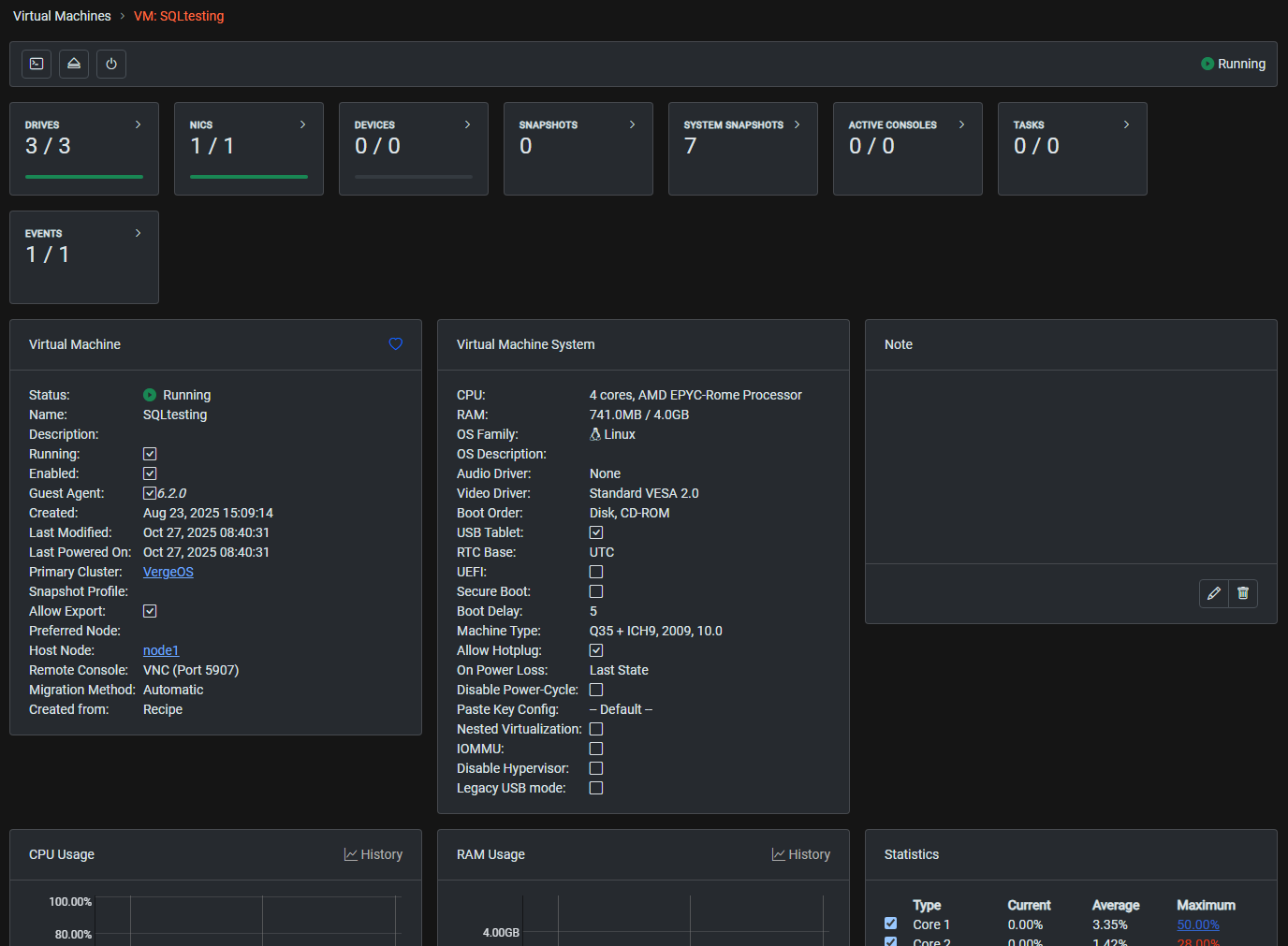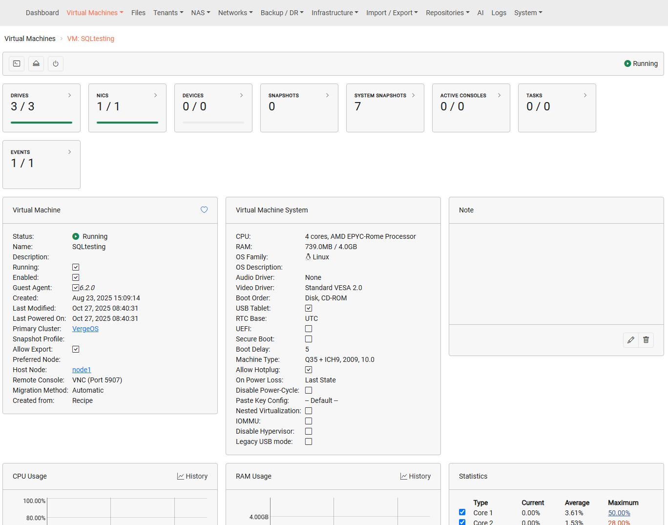 While VergeOS 26 introduces a refreshed look and several usability enhancements, the core structure remains comfortably familiar. The interface continues to follow the overview-to-detail dashboard model, preserving the general flow while improving clarity and accessibility.